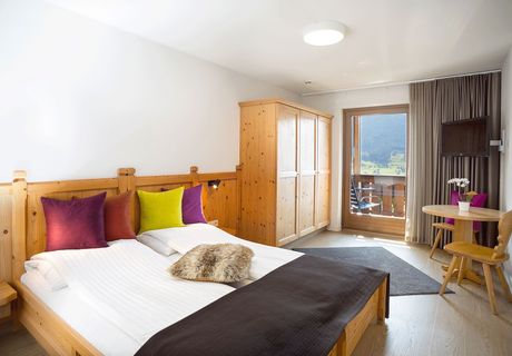 Zimmer: Die Zimmer sind gemütlich und funktional eingerichtet, ausgestattet mit modernen Annehmlichkeiten wie kostenfreiem WLAN, Flachbildfernseher, Safe und einem eigenen Bad mit Dusche oder Badewanne. Viele Zimmer bieten zudem einen Balkon mit herrlichem Blick auf die umliegenden Berge, was den Gästen die Möglichkeit gibt, die atemberaubende Natur zu genießen.